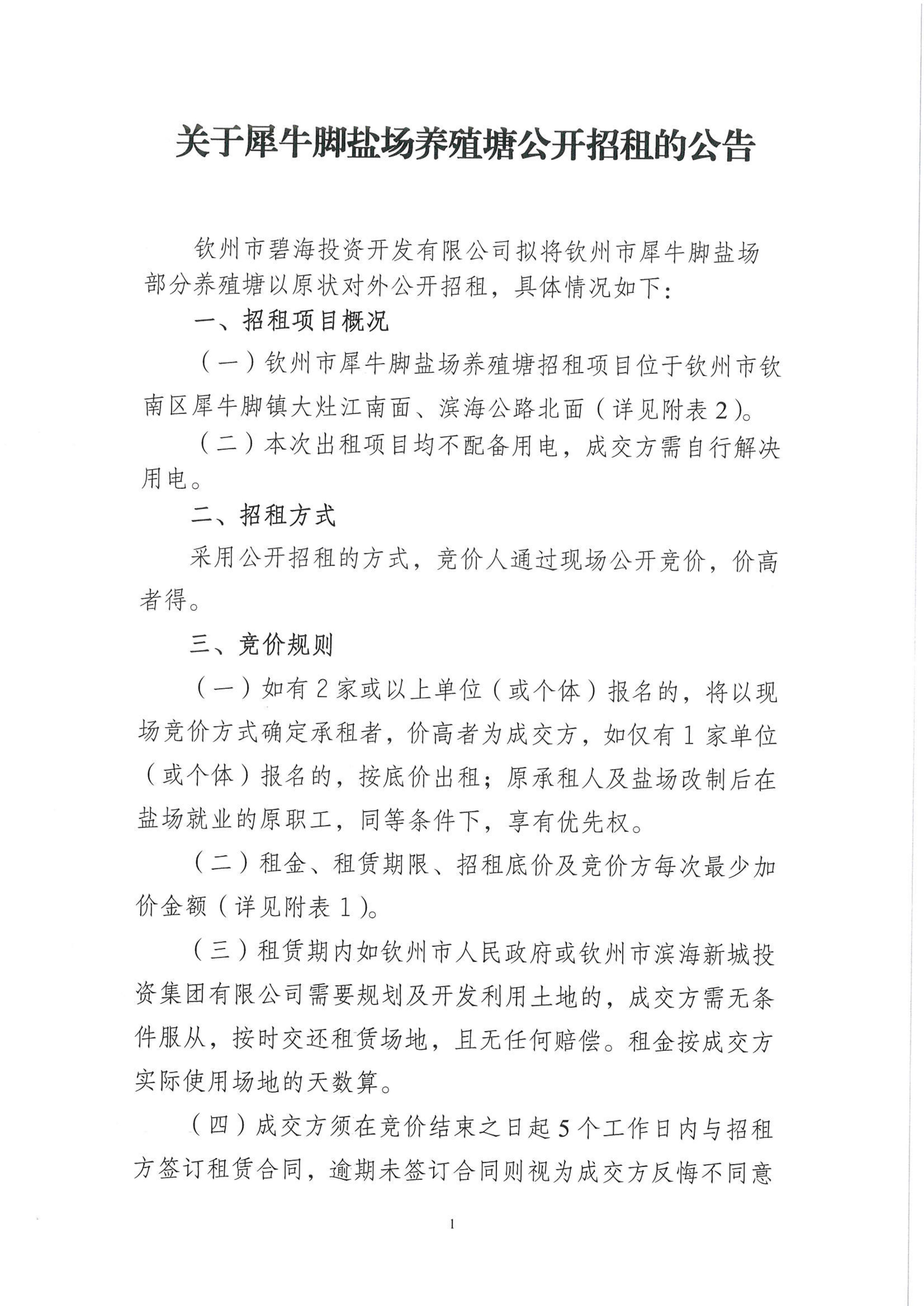 關(guān)于犀牛腳鹽場(chǎng)養(yǎng)殖塘公開招租的公告