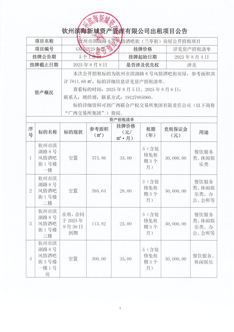 欽州濱海新城資產(chǎn)管理有限公司旺鋪及地塊對(duì)外招租公告