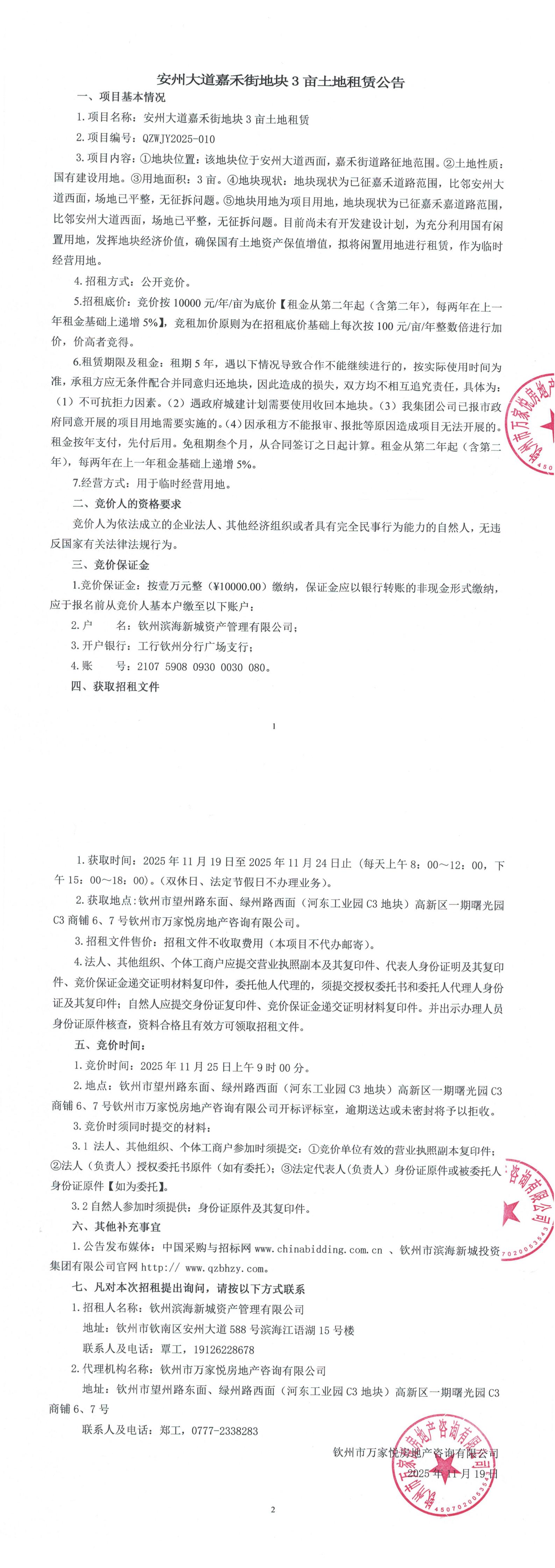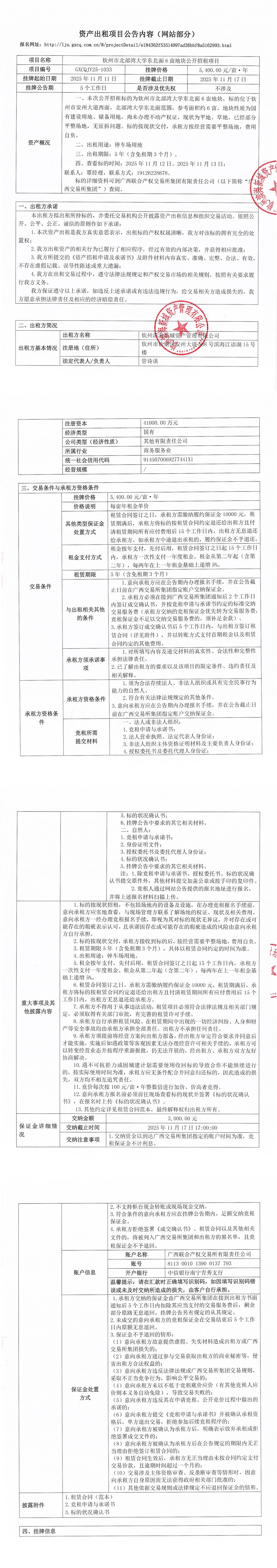 拍賣公告(欽州市安州大道西面、站前路南側(cè)6畝土地的5年租賃權(quán))