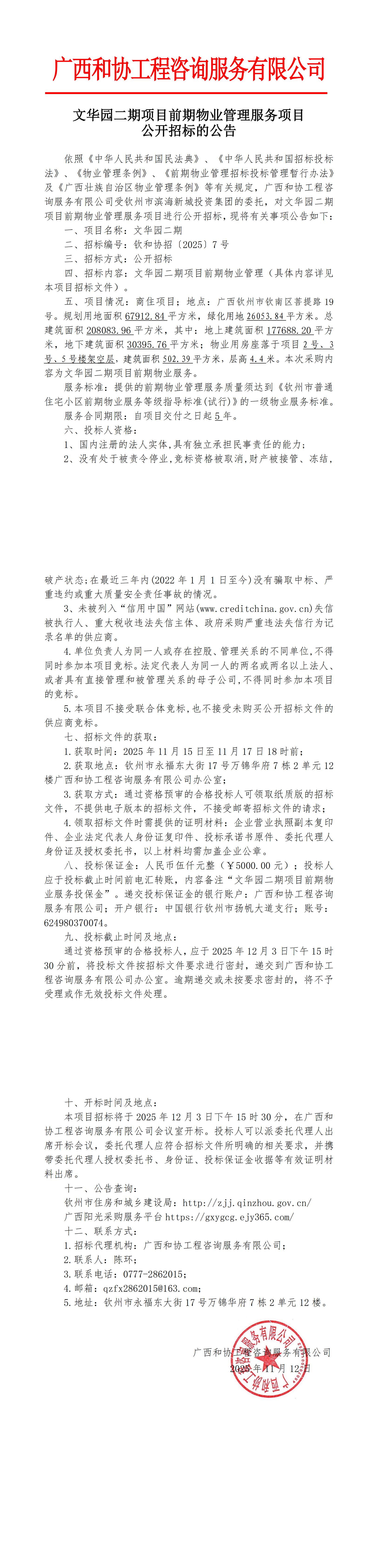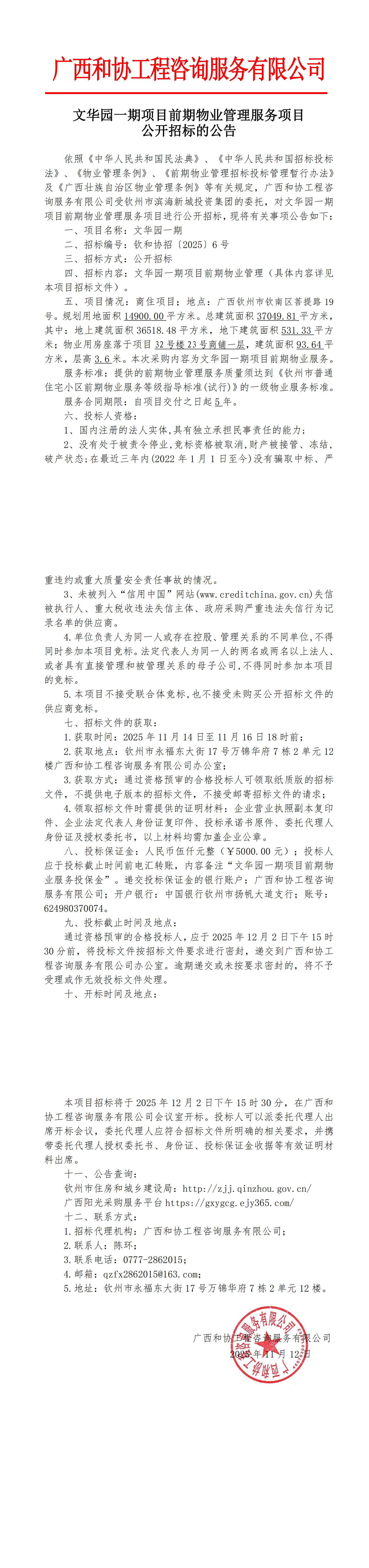 文華園二期項(xiàng)目前期物業(yè)管理服務(wù)項(xiàng)目公開(kāi)招標(biāo)的公告