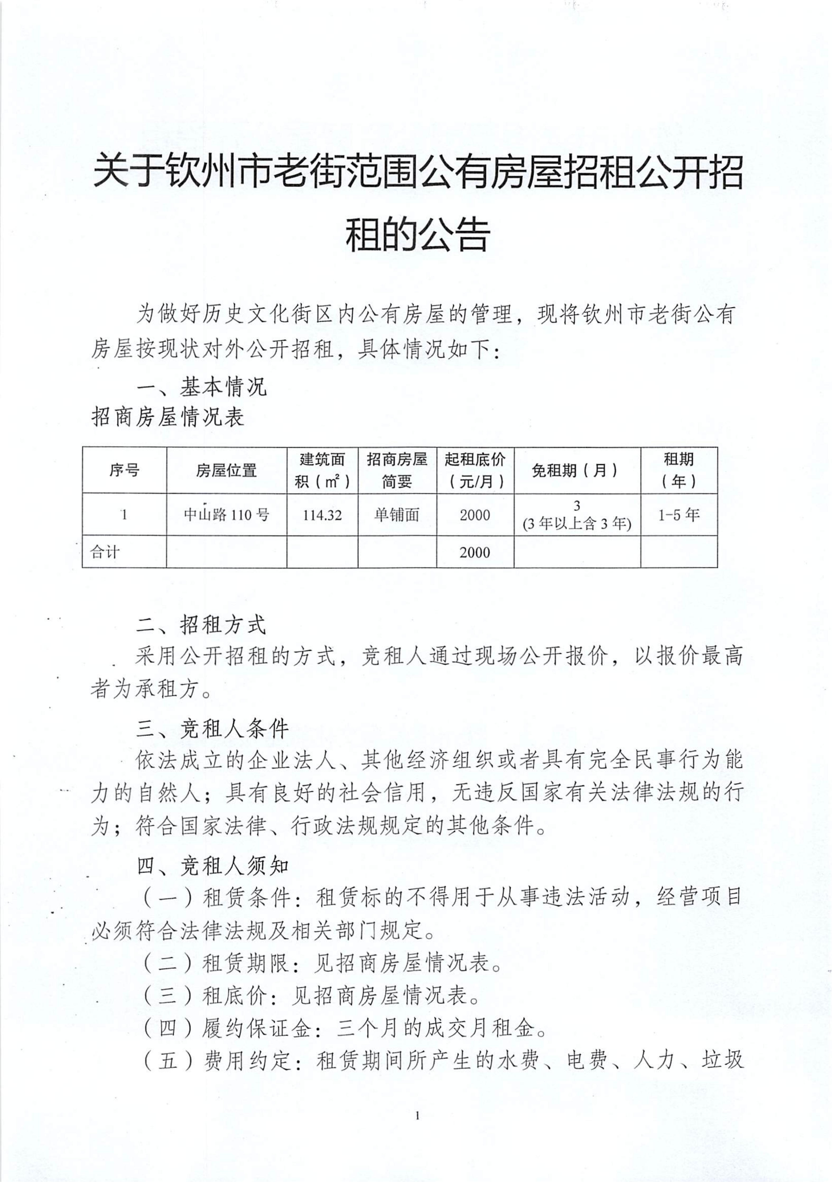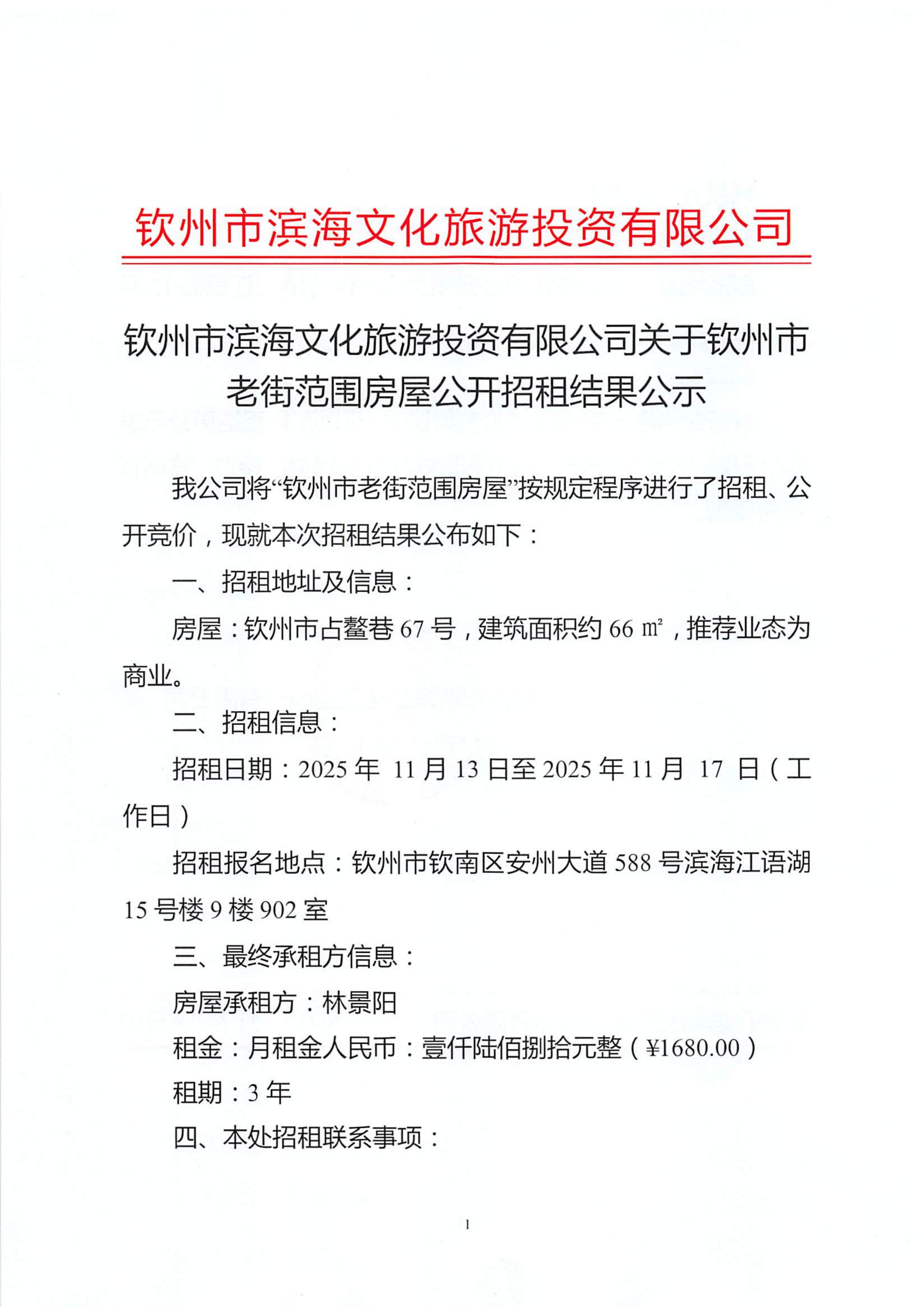 關(guān)于欽州市老街范圍房屋公開(kāi)招租結(jié)果公示(欽州市占鰲巷67號(hào))