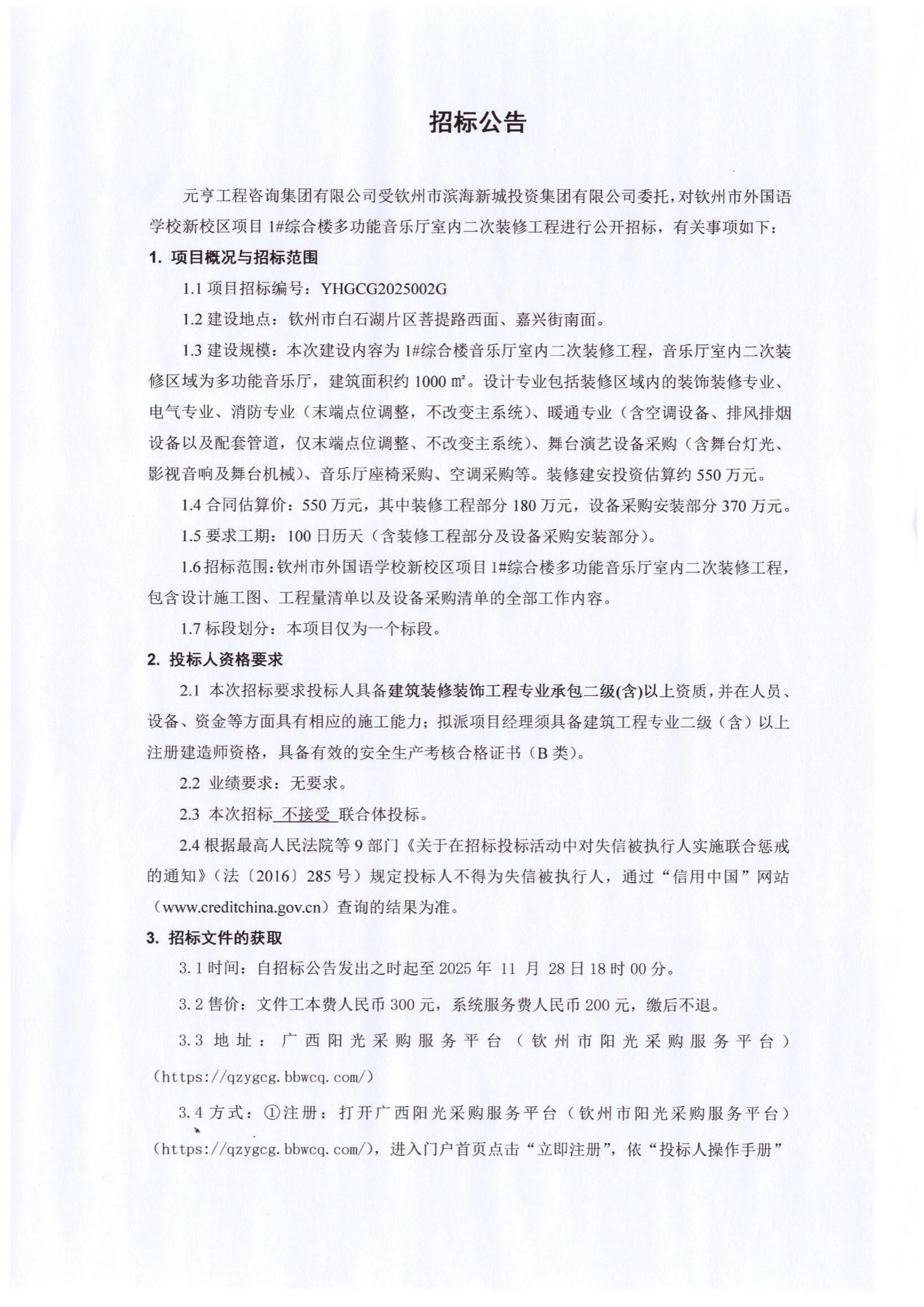 欽州市第二中學(xué)蓬萊校區(qū)一期項(xiàng)目檢測(cè)招標(biāo)控制價(jià)公告