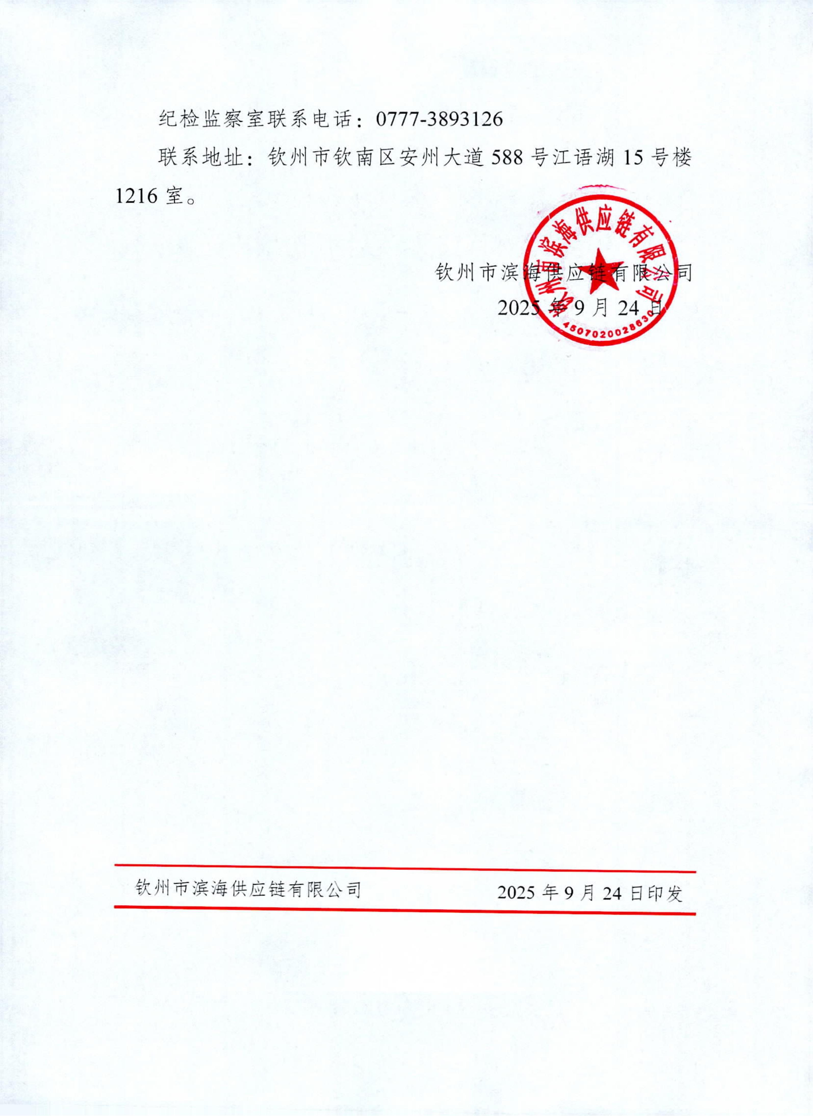 欽州市濱海供應鏈有限公司招聘公告