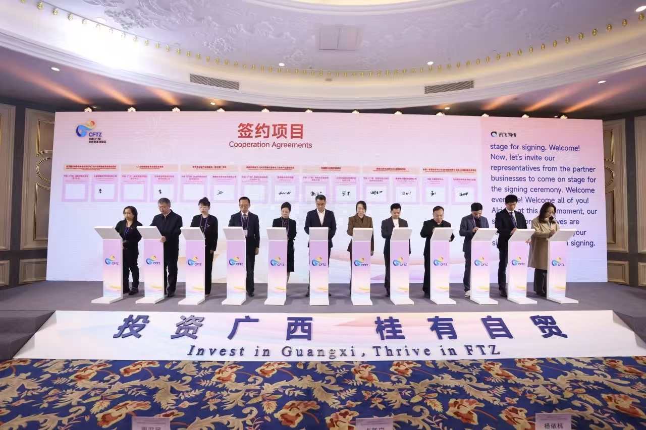 2025年11月5日,第八屆中國國際進(jìn)口博覽會(huì)期間,由自治區(qū)商務(wù)廳組織在上海舉辦了"投資廣西 桂有自貿(mào)"——中國(廣西)自貿(mào)試驗(yàn)區(qū)專場(chǎng)推介會(huì)。欽州市濱海新城投資集團(tuán)有限公司與中馬欽州產(chǎn)業(yè)園區(qū)管委就落地“高端多用途無人機(jī)及輕量化重油動(dòng)力系統(tǒng)產(chǎn)業(yè)基地項(xiàng)目”達(dá)成投資意向,并完成項(xiàng)目簽約。集團(tuán)公司副總經(jīng)理劉一材出席了此次簽約活動(dòng)。